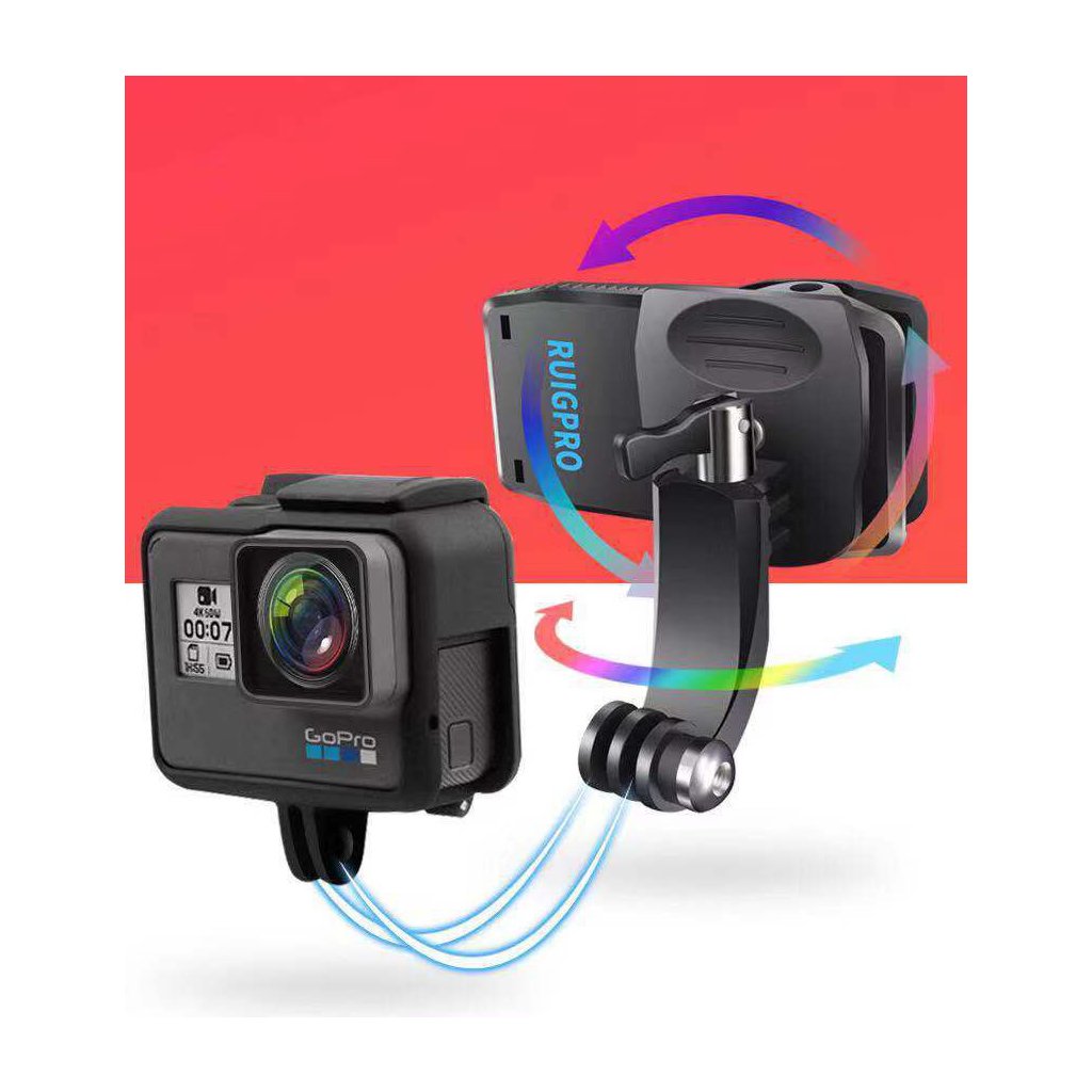 Otočný quickclip, který umožňuje ultra-kompaktní montáž s možností otáčení a může být použit pro připojení kamery k Popruhům batohů, pásku nebo jinému objektu o tloušťce 3 - 25mm.