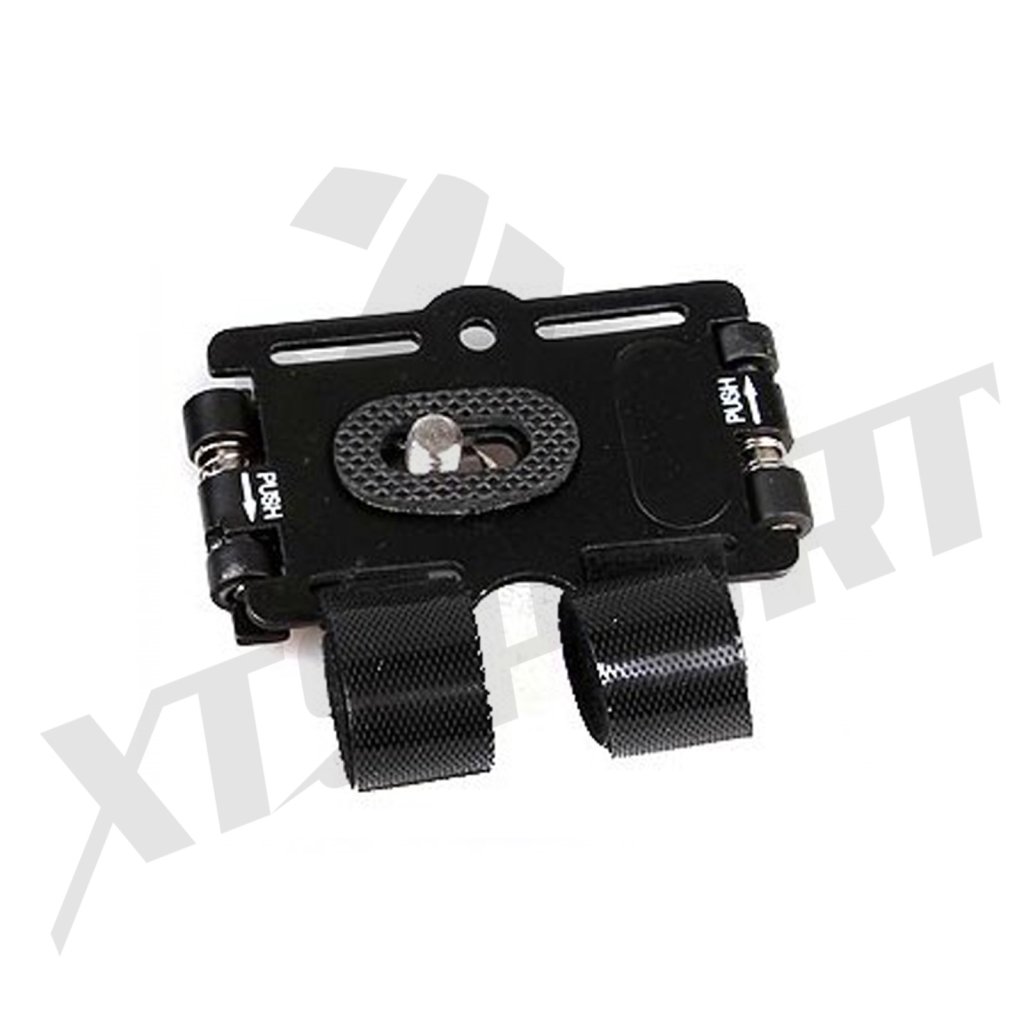 Akční držák lze pomocí popruhů se suchým zipem umístit prakticky kamkoliv. Je velmi lehký a pevný, můžete ho upevnit kolem nohy, řidítek atp.