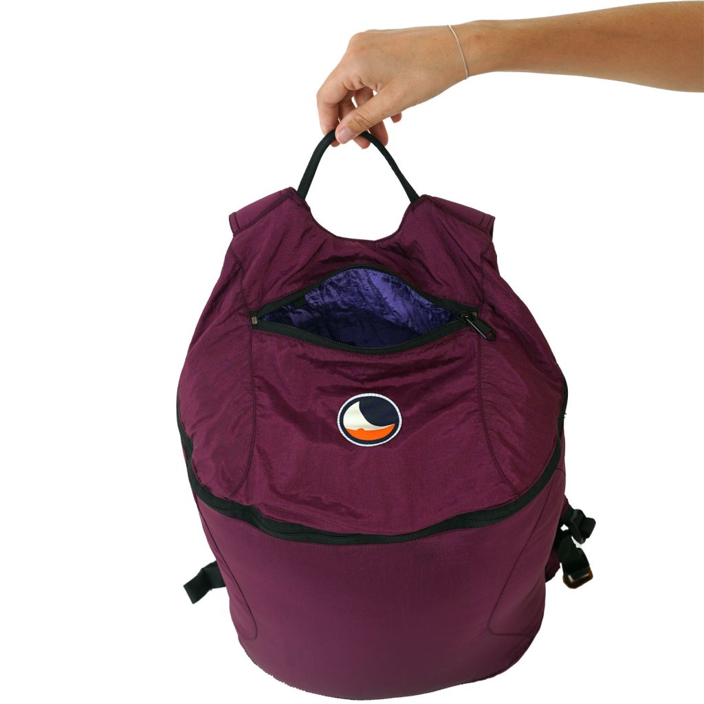 Všechny batohy plus jsou vyráběny ručně s podšívkou v kontrastní barvě. Všechny naše eko produkty jsou vyrobeny z repasovaného prodyšného padákového nylonu, a proto rychle schnou, jsou odolné proti hnilobě a lze je prát v pračce na 30 °C.