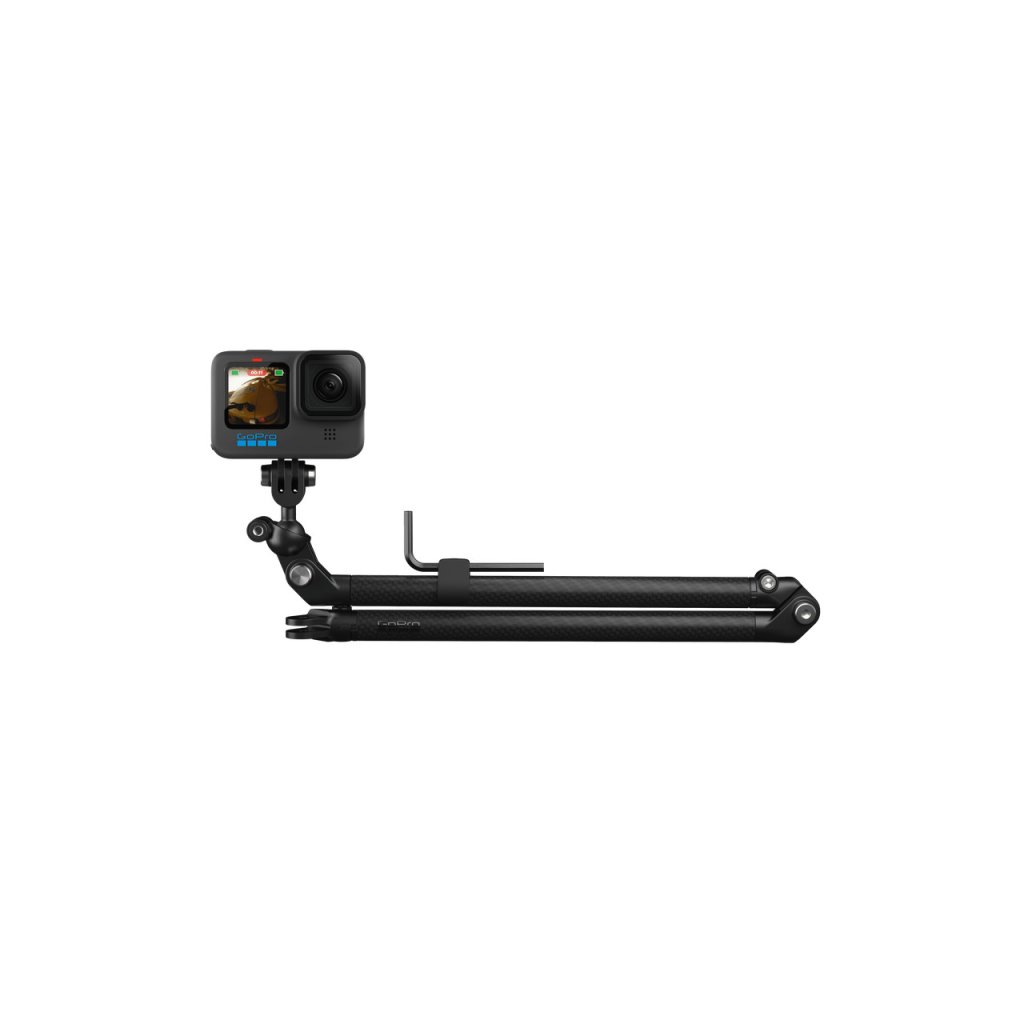 Boom + Držák na tyč je prémiová sada prodlužovacího ramene, kterou lze snadno připevnit k většině kulatých řídítek a sedlovek, a získat tak celé spektrum záběrů vás, vašeho kola i okolí. Jeho dvě ramena z uhlíkových vláken lze použít společně nebo jednotlivě k záznamu záběrů, na kterých jste čelem ke kameře, či záběrů typu follow-cam a zboku. Každé rameno disponuje integrovanými otočnými