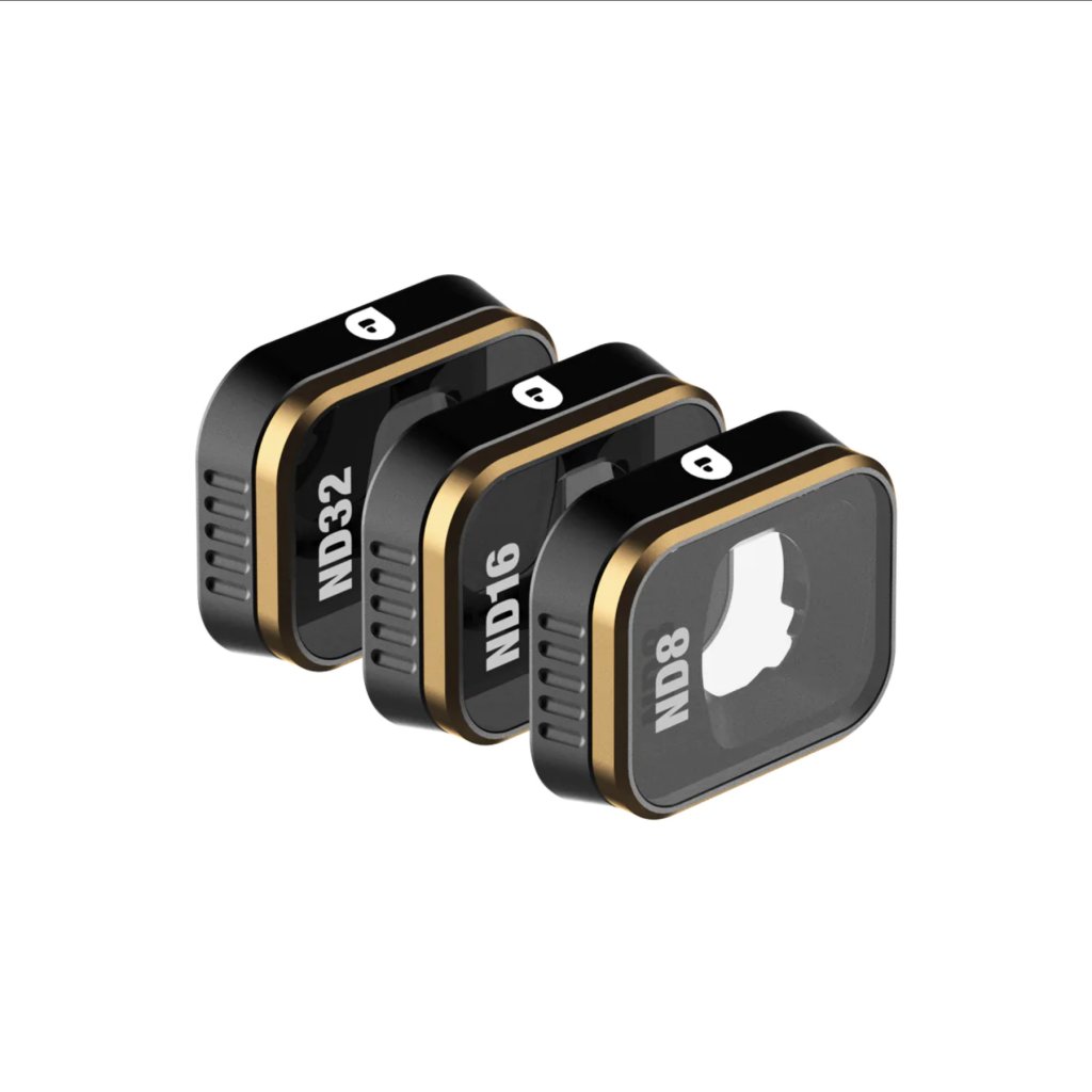 Sada Shutter 3-Pack neutrálních filtrů pro DJI Mini 3 Pro umožňuje pilotům snížit rychlost závěrky na filmovou úroveň. Sada obsahuje tři základní filtry; ND8, ND16 a ND32 – ideální pro polední nebo jasné filmovací prostředí. Každý filtr, navržený na míru pro Mini 3 Pro , obsahuje sklo CinemaSeries™ Glass s odolností a ochranou navrženou tak, aby odolala nárazům a rychle se měnícím prostředím.