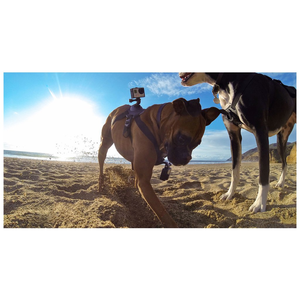 Upevněte GoPro na svého psa a zachytte svět z jeho pohledu. Tento popruh obsahuje dvě montážní místa pro mnoho pohledů: od žvýkání kosti, hrabání a akce předních tlap, po záběry přes hlavu při hraní, běhání, aportování a další. Vyrobeno z vodou omyvatelného, příjemného materiálu ve kterém může Váš pes plavat, hrát si a klidně ho zašpinit. Měkká, polstrovaná konstrukce udrží vášeho mazlíčka v pohodlí. Je plně nastavitelný, aby se do něj vešly malá, střední a velká plemena psů v rozmezí 7-54 kg. Hrudník mount je odnímatelný pro menší psy.