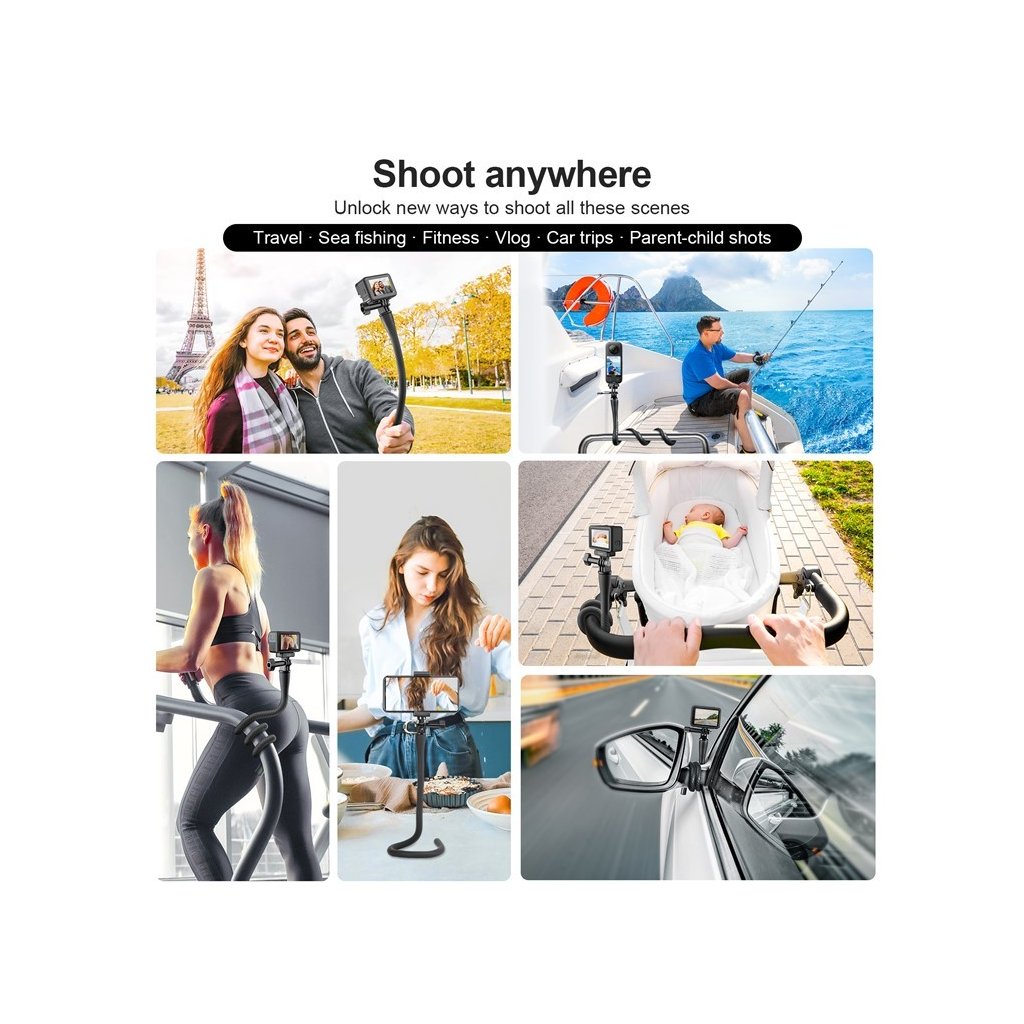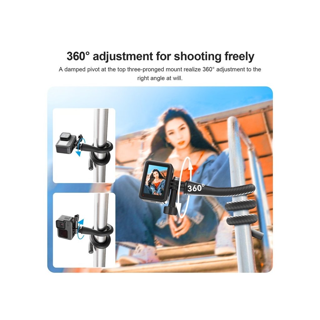 Ohebný, flexibilní a všestranný, připojte svůj smartphone a kameru kamkoliv. Výhradně určen pro smartphone, GoPro, akční kamery a digitální fotoaparáty. Pružná noha s protiskluzovými body zajišťuje silné uchopení. Vyrobeno z prémiového silikonu pro flexibilitu a trvanlivost.