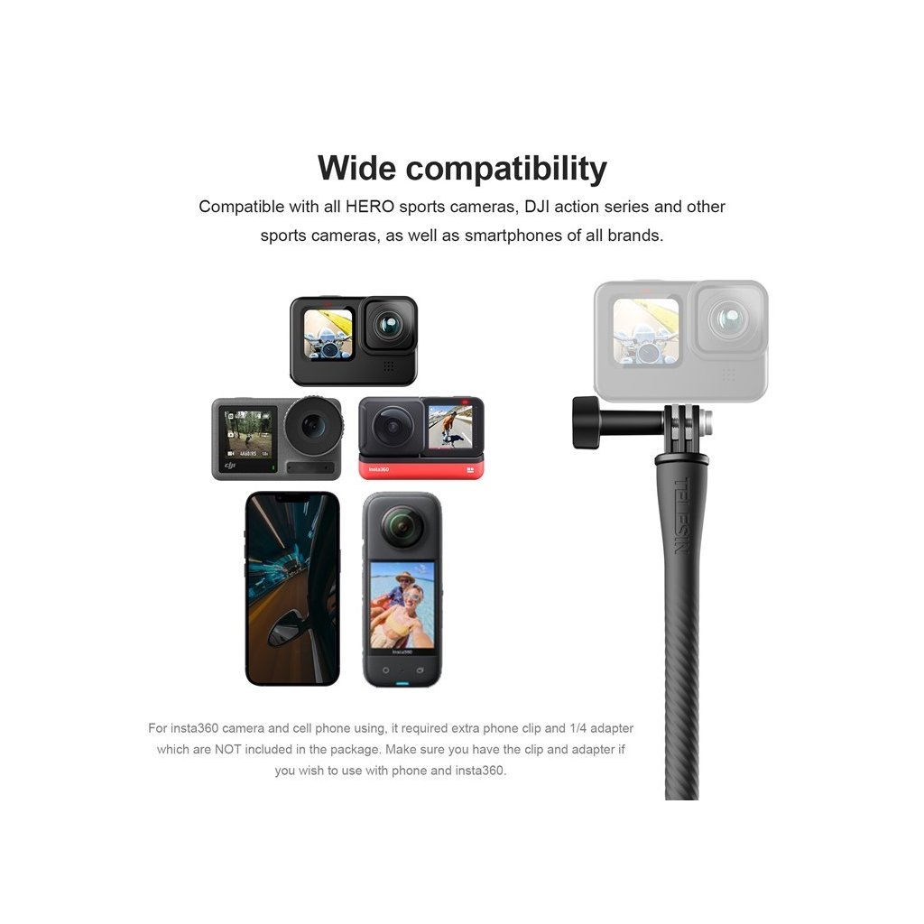- Pro řadu Gopro Hero / DJI Action / Insta360 / smartphony atd. (Insta360 vyžaduje 1/4 šroubový adaptér,smartphone vyžaduje držák na smartphone není součástí balení)