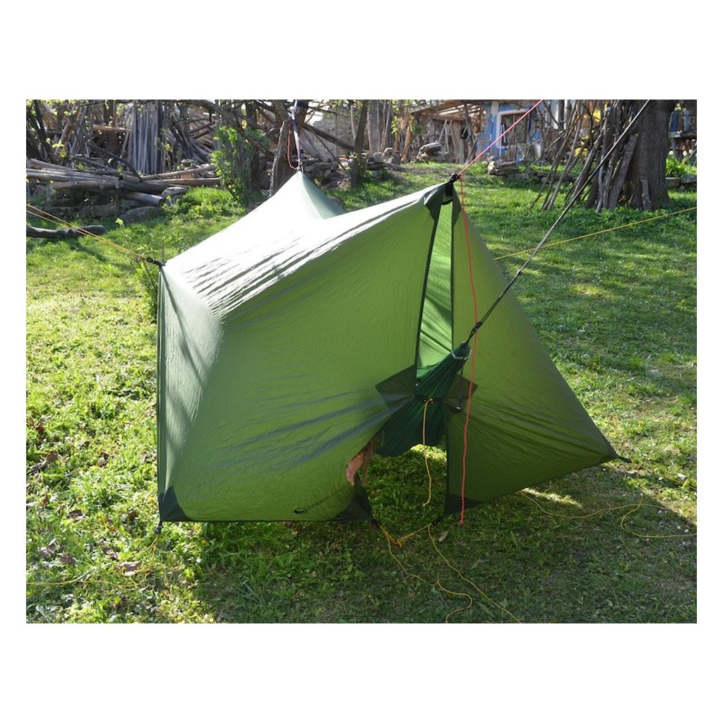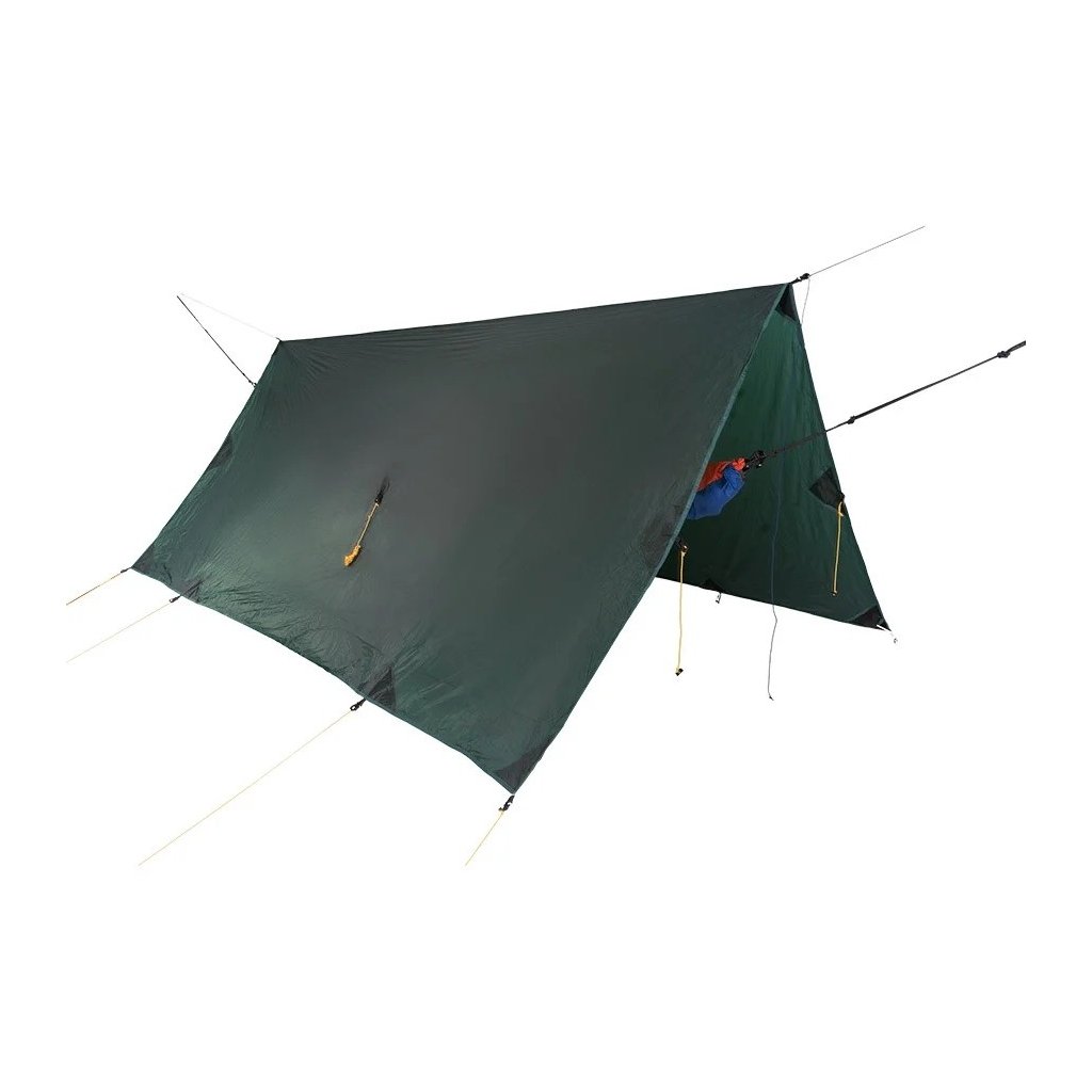 Full Moon tarp je pokročilá ochrana proti počasí, kterou můžete nastavit v různých konfiguracích. Ať už jste jako přístřešek typu A-frame v náročném počasí nebo jako diamantová plachta s maximálním průtokem vzduchu a viditelností v mírnějších podmínkách. Díky odolné, vysoce kvalitní tkanině Sil-Nylon 20D není tato plachta nejen plně vodotěsná s nízkou hmotností, ale je velmi tichá i za silného deště.
