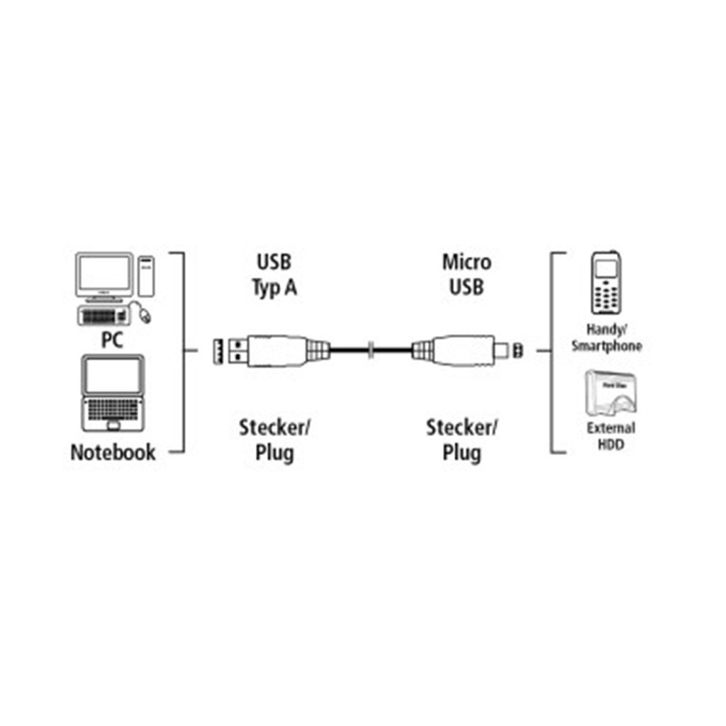 KABEL USB 2.0 A-micro B 1.8m - pro připojení zařízení s micro USB konektorem (např. gopro) k PC