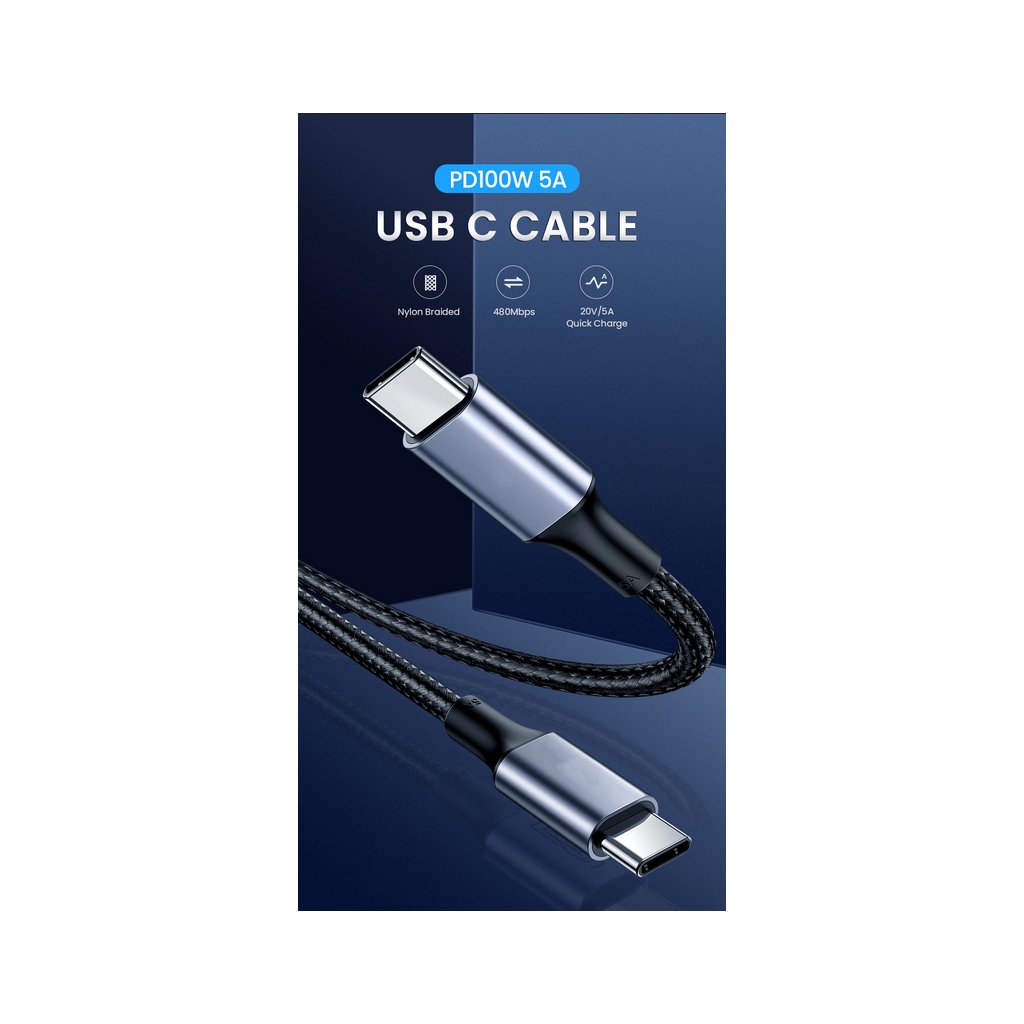 Ultra rychlý 5A kabel pro zařízení s konektorem USB-C pro připojení k USB-C. ULTRA CHARGING SPEED 5A. Délka: 0,5 m