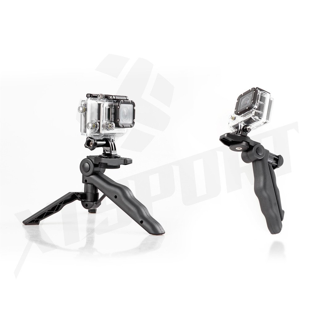 Tento univerální HandGrip (držák do ruky) můžete také rozložit na tripod. Díky ohebné vrchní části, lze kameru lehce směrovat. Je to ultralehký (90g) 10cm vysový stativ / hrandgrip, který při transportu nezabere skoro žádné místo a zajistí stabilitu sportovní kamery.