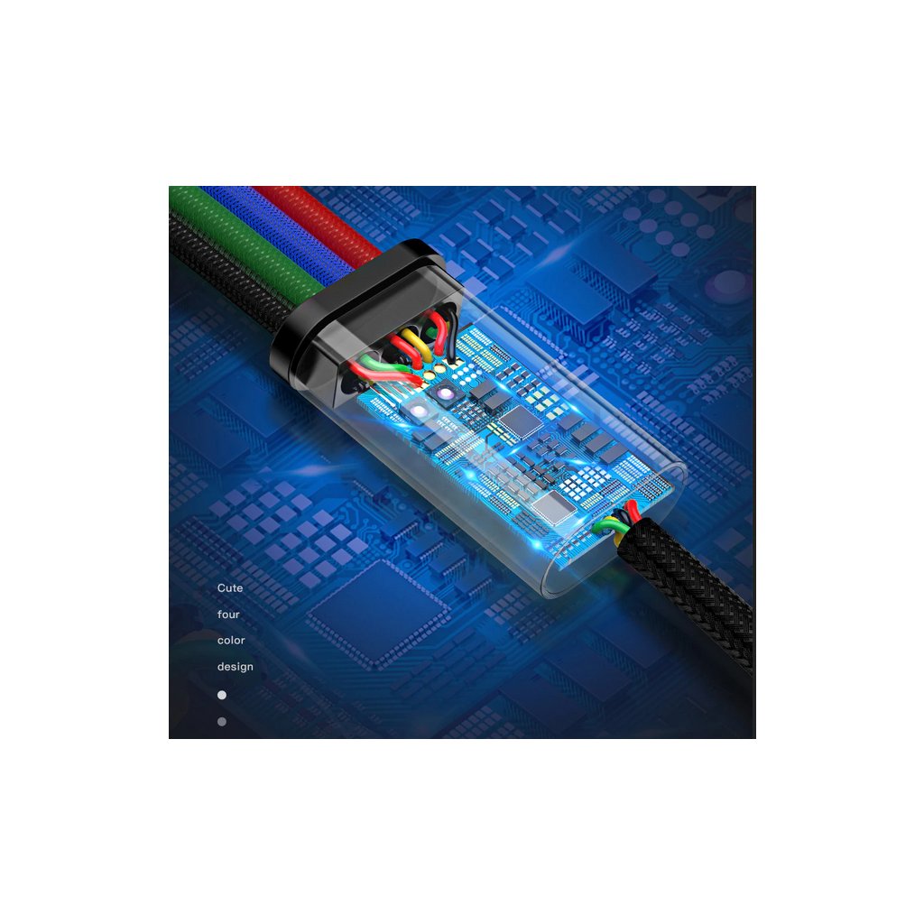 Multifunkční nabíjecí kabel 4v1 pro nabíjení zařízení s konektorem USB-C, micro USB a 2x Lightning. CHARGING SPEED 3.5A. Délka: 1,2 m