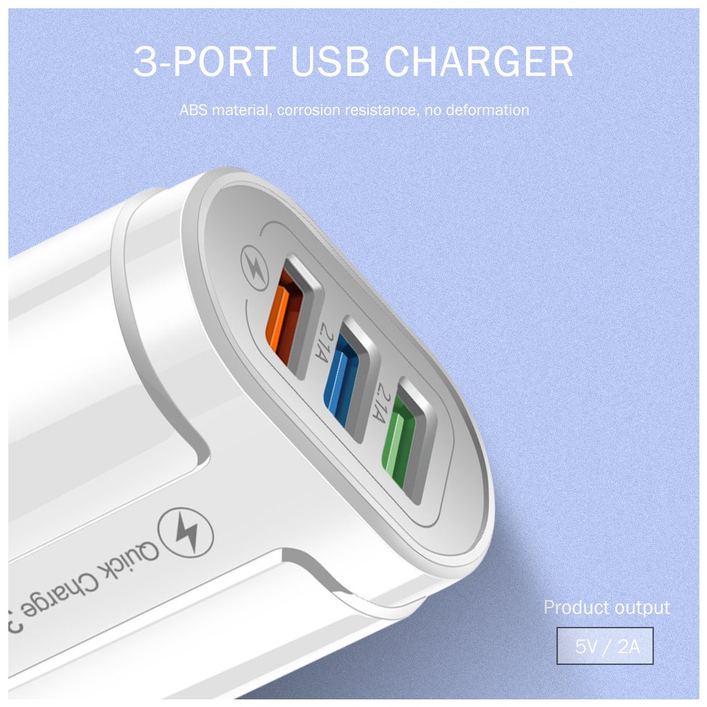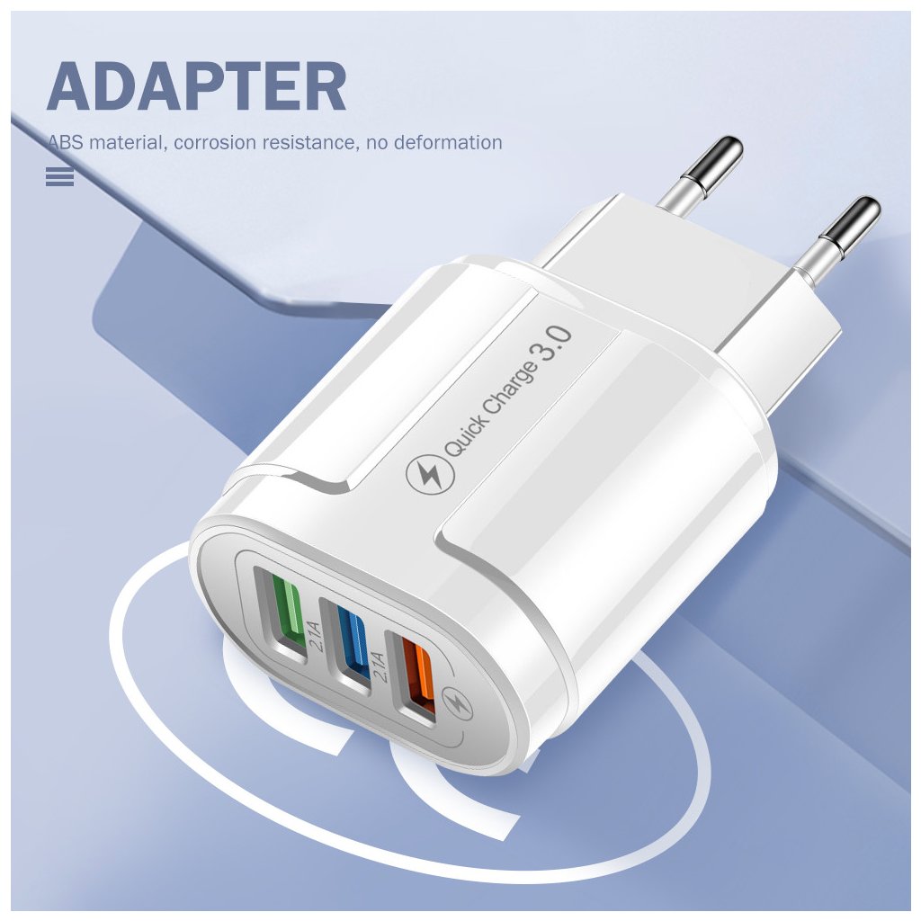 Univerzální Quick charge Qualcomm3.0 síťová nabíječka 3x USB - bílá